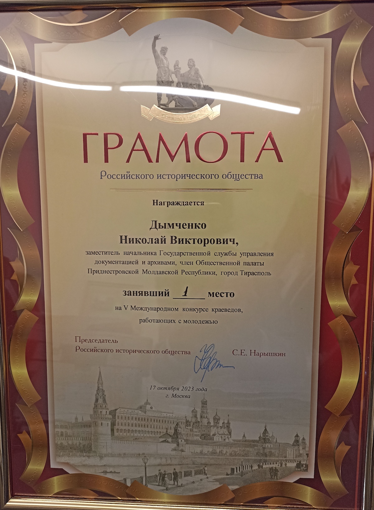 Руководитель Приднестровской секции Славянского отделения, академик ПАНИ, государственный и общественный деятель ПМР, кандидат культурологических наук Николай Викторович Дымченко (г. Тирасполь, Приднестровская Молдавская Республика) стал лауреатом международной премии имени великого князя Сергея Александровича Романова по линии Императорского Православного Палестинского общества (20 июня 2023 г.) и лауреатом международного конкурса краеведов, работающих с молодежью (по линии Российского исторического общества, 17 октября 2023). Оба награждения состоялись в Москве, но по понятным причинам поехать на церемонию вручения он не смог. ПМР сегодня находить в блокаде.
