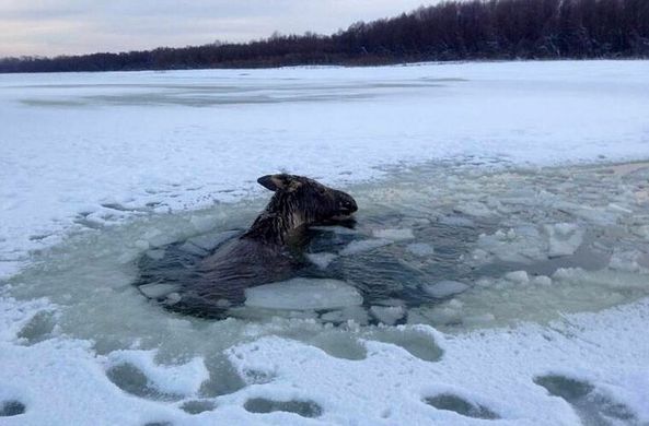 Однако вдруг затеплилась надежда. Зверю удалось своей грудью, подобно ледоколу, взламывая ледяной покров озера, постепенно прокладывать путь к берегу, оставляя за собой неширокую полосу открытой воды. Слегка подтаявший весенний лёд не выдерживал натиска тяжелого тела, которое, несмотря на все испытания, продолжало бороться за жизнь.