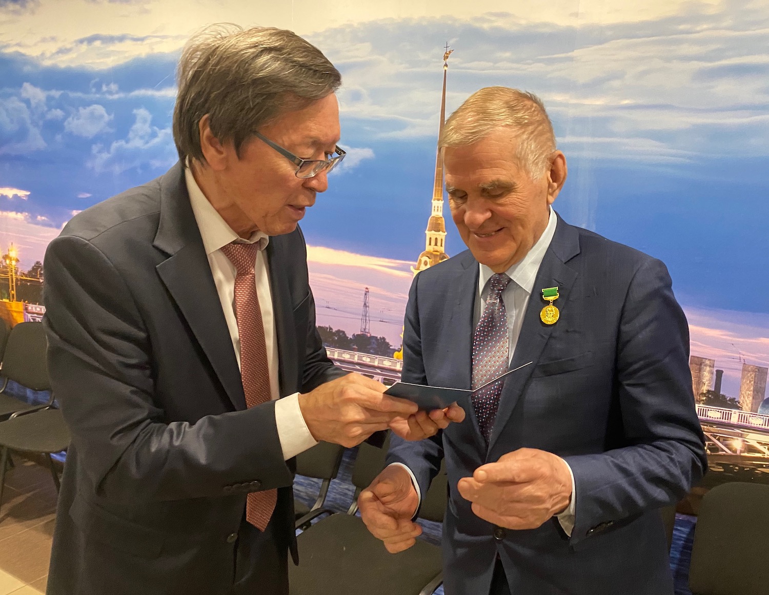 Столь высокой наградой профессионального профессорско-преподавательского сообщества Казахстана Алексей Васильевич награждён за выдающиеся заслуги в сфере высшего и послевузовского образования, за значительный вклад в его развитие. Профессор К.С. Мауленов также передал Президенту ПАНИ самые добрые пожелания от казахстанких коллег.