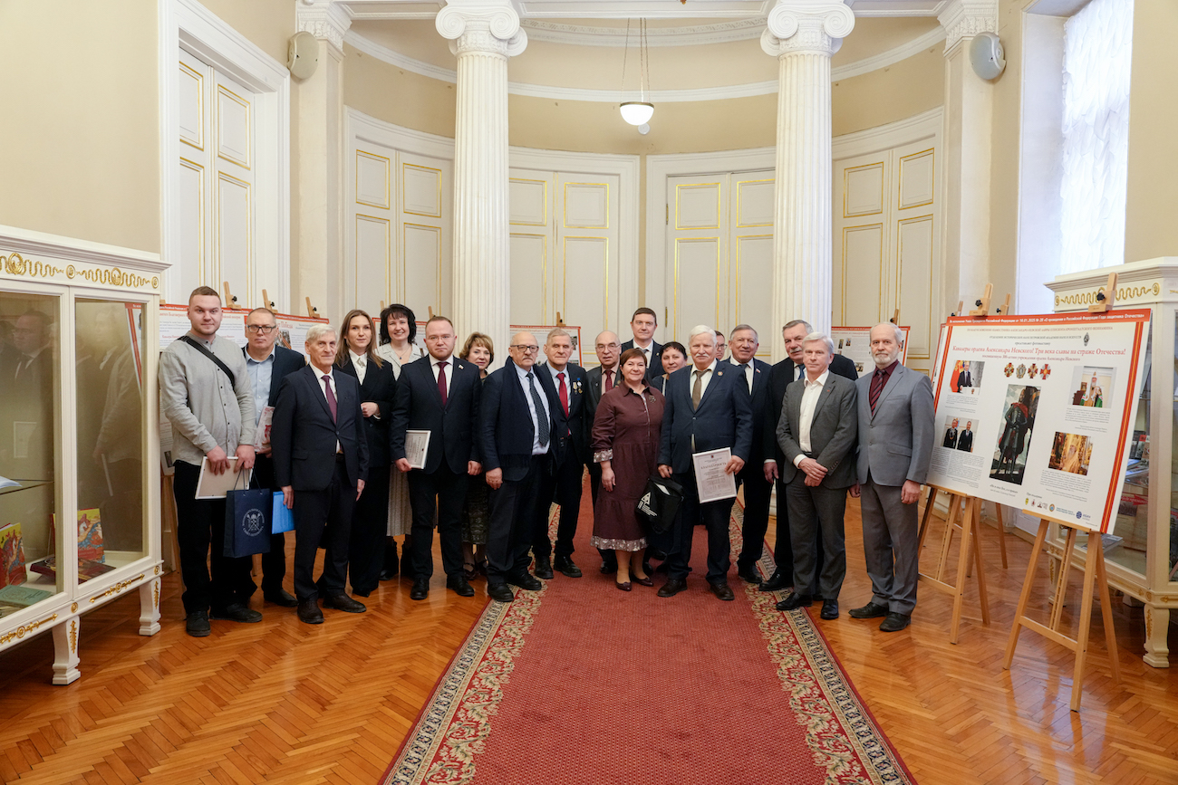 О начале работы, выставки перед собравшимися депутатами Законодательного собрания, работниками дворца и приглашенными слушателями, объявил депутат Законодательного Собрания кавалер ордена Александра Невского Ржаненков А.Н. Он зачитал обращение к организаторам и гостем этой выставки Председателя Законодательного собрания Санкт-Петербурга А.Н. Бельского, также являющегося кавалером ордена Александра Невского.Перед собравшимися выступил Президент Петровской Академии наук и искусств А.В. Воронцов сообщивший о том, что эта выставка побывала уже в Московском районе Санкт-Петербурга, в городах Тихвин и Гатчина Ленинградской области, а была открыта 10 сентября 2025 года наместником Александро-Невской Лавры, епископом Кронштадтским Вениамином в Александро-Невской Лавре в канун 301 годовщины переноса мощей Александра Невского из Владимира в Санкт-Петербург.