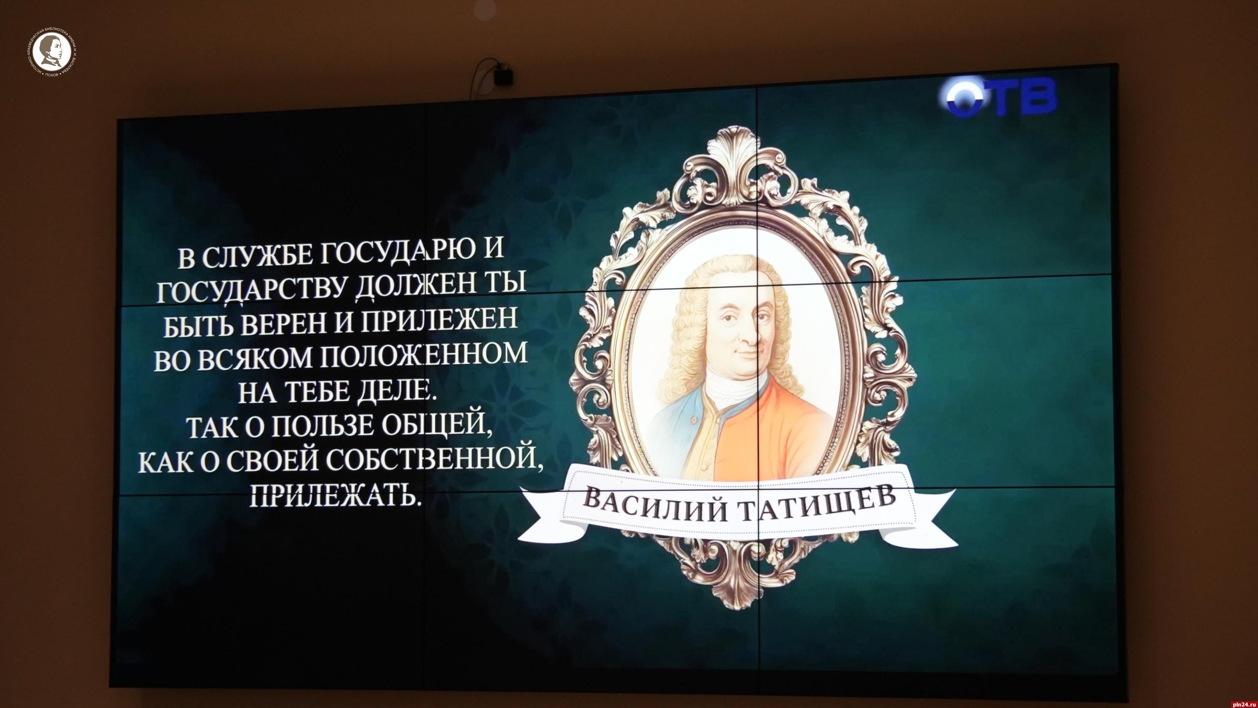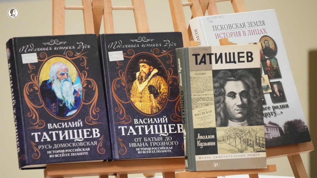 Руководитель Центральной Библиотечной Системы г. Пскова Л.В. Слабченко представила старейшие книги о В.Н. Татищеве, в том числе «Избранные произведения Татищева» 1970 г., «Псковская земля. История в лицах. Дворяне все родня друг другу».
